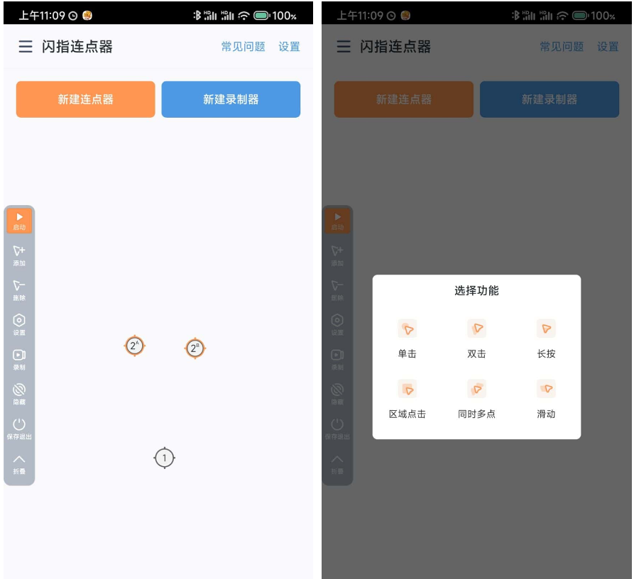 手势录制,功能多样;体积小不占用手机内存,有效的制作各种有效游戏和应用辅助脚本,支持屏幕单点点击、多点循环点击、点击加滑动组合等各种手势。