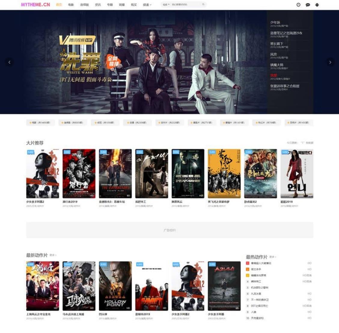 首涂MyThemme第22套模板这是一款带独立后台管理的苹果cms主题模板,一套自适应美观大气的影视模板,