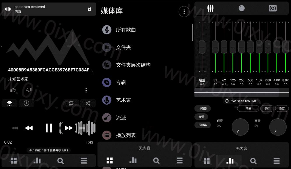支持MP3、MP4/M4A、无损ALAC/FLAC/APE、OGG、WAV、TTA、WMA、WV格式的播放